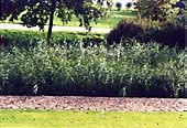 3 Der Filterkörper wird über die Rhizomleitbahnen der Sumpfpflanzen sowie durch regelmäßige Absenkung des Wasserstandes mit Sauerstoff durchlüftet. Die Steuerung des Wasserstandes erfolgt im Auslauf-Systemschacht. Der Wurzeltrieb der Sumpfpflanzen lockert den Filterkörper ständig auf und unterstützt die aeroben und anaeroben Abbauprozesse. |